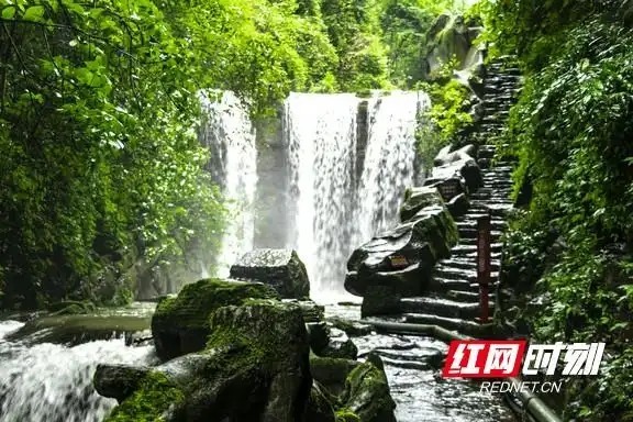 经历五亿年前的变迁,曾经的海底世界化作今日的红色碳酸盐岩石林,成柱成片的红色石林、石崖、石墙、石峰,分布在群山峻岭之中。古丈红石林的色彩还能因天气而变,晴天望去一片紫红,阵雨之时顿成褐红。《血色湘西》《花儿与少年》《爸爸去哪儿》等许多大家耳熟能详的剧组都曾纷纷来此取景拍摄。【坐龙峡】
